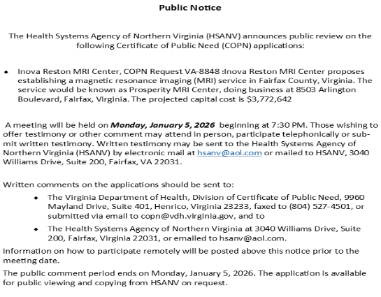 Health Systems Agency of Northern Virginia © 2000 - 2025