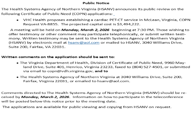 Health Systems Agency of Northern Virginia © 2000 - 2026